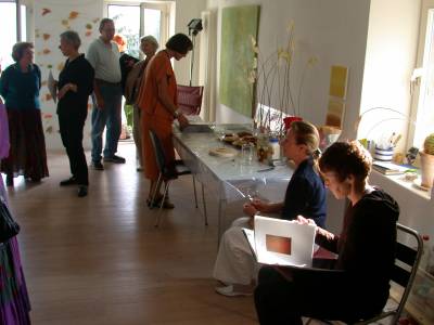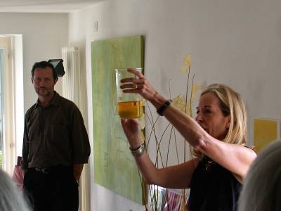 Die Künstlerin sammelt Pflanzen in der Umgebung, stellt damit ihre eigenen Farben her und malt Bilder.