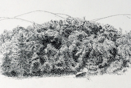Christine Bradys Zeichnungen gehen vom Konkreten aus, vom Organischen, Berührbaren. Sie schaut vom Balkon der Casa Atelier auf die umliegenden Hügel und Wälder und ist fasziniert von der Anordnung der einzelnen Elemente, die ein rhythmisches Ganzes ergeben: Jeder Baum hat seine Persönlichkeit – «Schau, wie aufrecht das Tännchen dasteht, wie zerzaust sich ihr Nachbar hinkauert, wie anmutig der daneben auftritt, wie neckisch der Kleine da seine Krone reckt!»