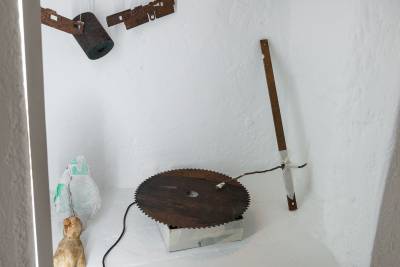 Bei aller Vielfalt gibt es eine thematische Klammer der Ausstellung, die im Titel genannt wird: «Formen des Obsoleten». Was ist obsolet? Ein Kartonschild gibt Auskunft: «nicht mehr gebräuchlich, nicht mehr üblich, veraltet, überflüssig, abgenutzt, hinfällig». Regula Ehrliholzer erzählt ein Beispiel: «Wenn an meinem Postfach in Bedigliora ein Zettel mit «Pacco» hängt, weiss ich, dass in der Bibliothek ein Paket für mich bereitliegt. Sobald ich das Paket abgeholt habe, wird der Hinweis obsolet, ich brauche den Zettel nicht mehr. Was tue ich nun damit? Ich kann ihn aufbewahren, dann wird er Erinnerung, ich kann ihn wegwerfen, dann wird er Abfall, oder ich kann ihn recyclen, dann wird er Rohstoff.» Die Frage ist also nicht nur, was obsolet wird und warum, sondern auch, wie wir damit umgehen. Diesen Fragen geht die Künstlerin im Kleinen wie im Grossen nach, im Intimen wie im Politischen, in der Kultur wie in der Natur. Sie geht vom Altpapierzettel aus und landet beim Weltraumschrott, sie befasst sich mit kaputten Dingen, mit nicht mehr benutzten Räumen, stöbert in Flohmärkten und Schrotthaufen, steigt in Höhlen und in stillgelegte Bergwerke wie die alte Goldmine von Sessa. Ihre Inspiration wird häufig auch von der Lektüre geweckt. In Bedigliora las sie unter anderem Robert MacFarlanes Buch Underland, in dem er beschreibt, wie Bäume miteinander kommunizieren. Als sie auf dem Monte Bedeia gefällte Bäume sieht, fotografiert sie die Wurzeln, die nun auch obsolet geworden sind. Das Motiv zieht sich weiter durch ihre Arbeit: Ein auf dem Schrotthaufen gefundenes Sägeblatt wird im Diorama zur Platte, die sich auf dem Plattenteller dreht, auf dem ein Ästchen die Nadel hält, die darüber kratzt. Aus der Kommunikation zwischen Bäumen wird für uns ein mysteriöses, unverständliches und etwas unheimliches Krächzen.
