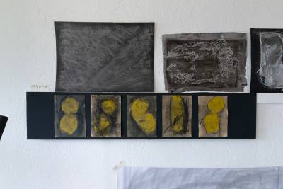 Fantasievolle Einfälle und ungewohnte Kombinationen der Künstlerin bringen zum Lachen, lassen einen aber auch nachdenklich zurück. Es geht im wahrsten Sinne um die «letzten Dinge». Wir Menschen, die gerne alles neu kaufen und Altes achtlos fortwerfen, sind selbst ja auch dem Altern und Sterben unterworfen. Und vielleicht wird die Menschheit als Ganzes bald obsolet auf der Erde? Regula Ehrliholzer befasst sich nicht nur mit der Thematik des Obsoleten, sondern setzt sie auch im Schaffensprozess um: Sie malt häufig mit Restfarben und setzt früher verwendete Objekte ein, statt sie wegzuwerfen. So entstand eine Serie mit Formen rostiger Gegenstände, die sie gefunden hatte. Wofür sie einst gebraucht wurden, ist häufig nicht mehr ersichtlich – in Regula Ehrliholzers Werken lösen sie sich von ihrem Zweck und werden zur ästhetischen Präsenz. Dabei lässt sie sich gerne überraschen und überlässt sich dem Schwung der Serie, an der sie arbeitet, ohne gross zu planen – dies als Gegenpol zu ihrer strukturierten Konzeptarbeit als Grafikerin.