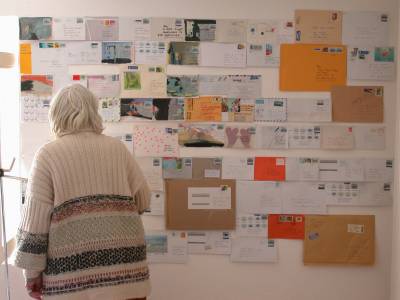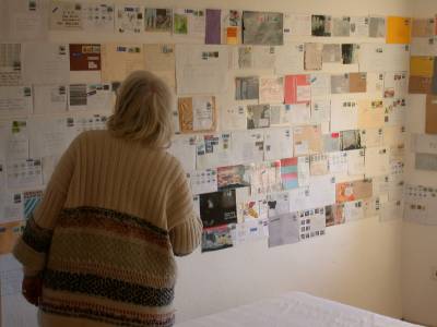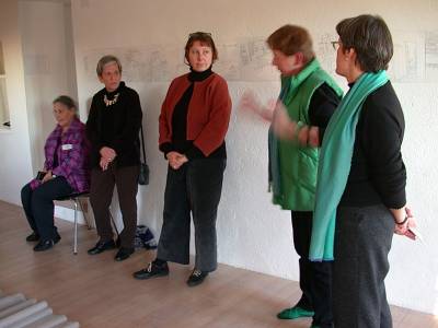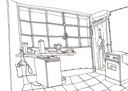 Die Künstlerin zeichnet Interieurs bei verschiedenen Menschen im Dorf und in der Umgebung.