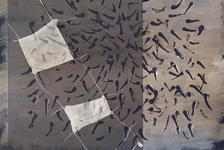 Roma Messmer, «Ein Lächeln am Fusse der Leiter», Acryl, Japanpapier, Draht