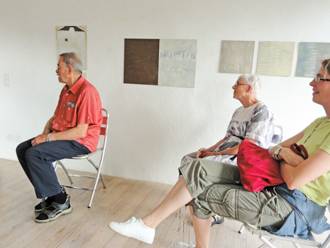Stärke und Fragilität charakterisieren auch die plastischen Gebilde, die Roma Messmer mit Draht, Schnur und Japanpapier realisierte: ein Traumschloss und ein Stuhl stehen auf dünnen Beinchen, ein Fenster fehlt, ein Stuhlbein schwebt über dem Boden – Orte, an denen man sich niederlassen könnte, sind durchlässig, filigran, schwankend wie Leitern – und doch behaupten sie sich und halten die Stellung.